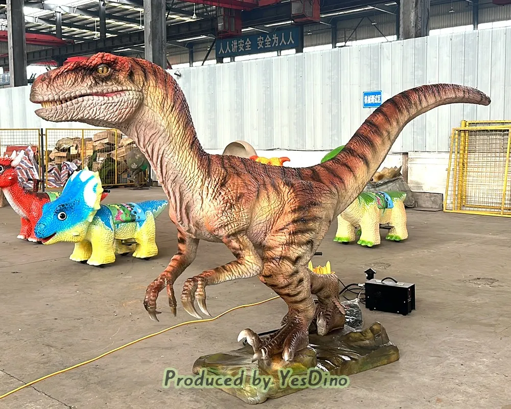As one of the iconic stars of the Jurassic World film franchise, the Velociraptor—a ferocious carnivorous dinosaur—surprisingly exhibits extraordinary obedience once trained. It shows immense loyalty to humans and ultimately joins forces with them to defeat the terrifying T Rex. Our Lifesize Animatronic Velociraptor features large, bright, expressive eyes that strike a perfect balance between fierce and endearing, making it one of the most beloved star dinosaurs among children at dinosaur exhibitions. In dinosaur displays, Velociraptors are often exhibited in packs to showcase the remarkable teamwork and pack-hunting instincts they displayed in their natural Cretaceous habitats.