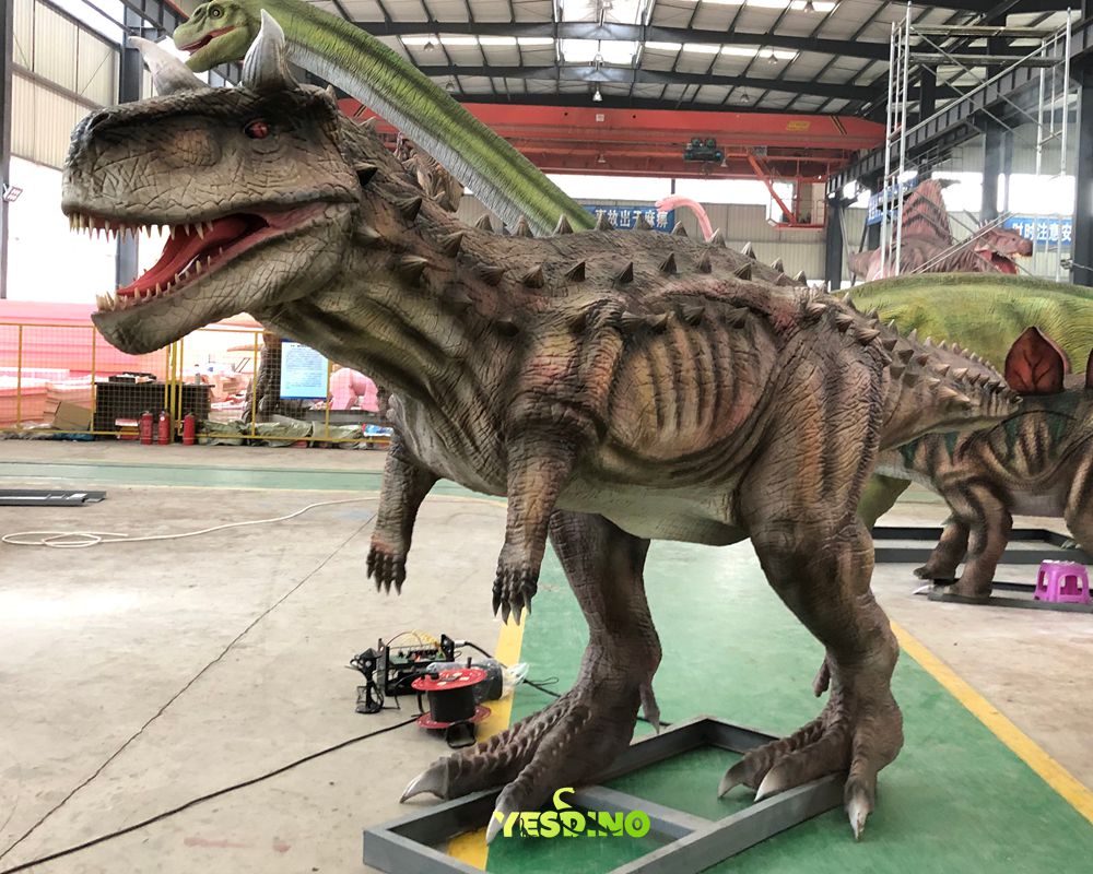 It's not just a statue, either. Watch its muscular hind legs shift like it's about to lunge, its jaws open and close in slow, menacing motions, and listen for low, rumbling roars that echo like they're straight from 70 million years ago. Whether it's dominating a natural history museum exhibit, wowing crowds at a theme park, or making a kid's dinosaur birthday party the stuff of legends, this Carnotaurus doesn't just stand there—it lives.