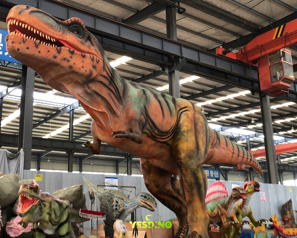Animatronic dinosaurs are large electric-powered biomimetic animal models that cleverly transform cold steel and unattractive sponges into lifelike, movable, and roaring dinosaurs through mechanical transmission design, motion control circuit design, artistic carving, skin texture treatment, and meticulous coloring.