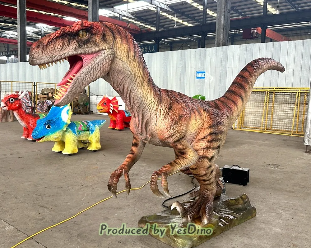 As one of the iconic stars of the Jurassic World film franchise, the Velociraptor—a ferocious carnivorous dinosaur—surprisingly exhibits extraordinary obedience once trained. It shows immense loyalty to humans and ultimately joins forces with them to defeat the terrifying T Rex. Our Lifesize Animatronic Velociraptor features large, bright, expressive eyes that strike a perfect balance between fierce and endearing, making it one of the most beloved star dinosaurs among children at dinosaur exhibitions. In dinosaur displays, Velociraptors are often exhibited in packs to showcase the remarkable teamwork and pack-hunting instincts they displayed in their natural Cretaceous habitats.