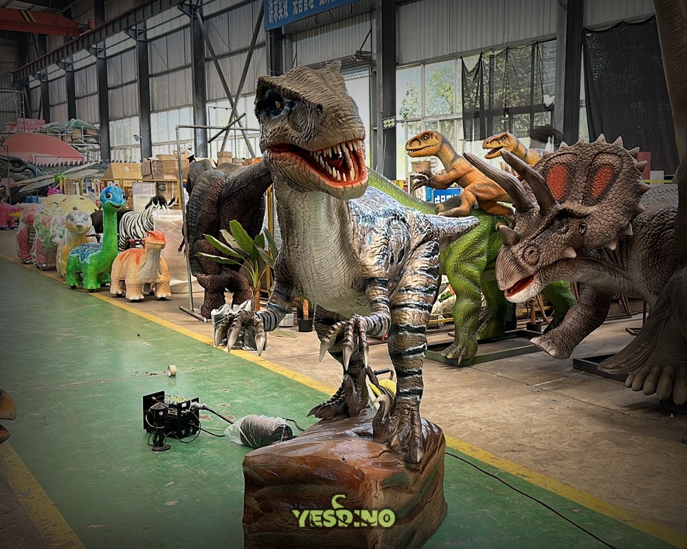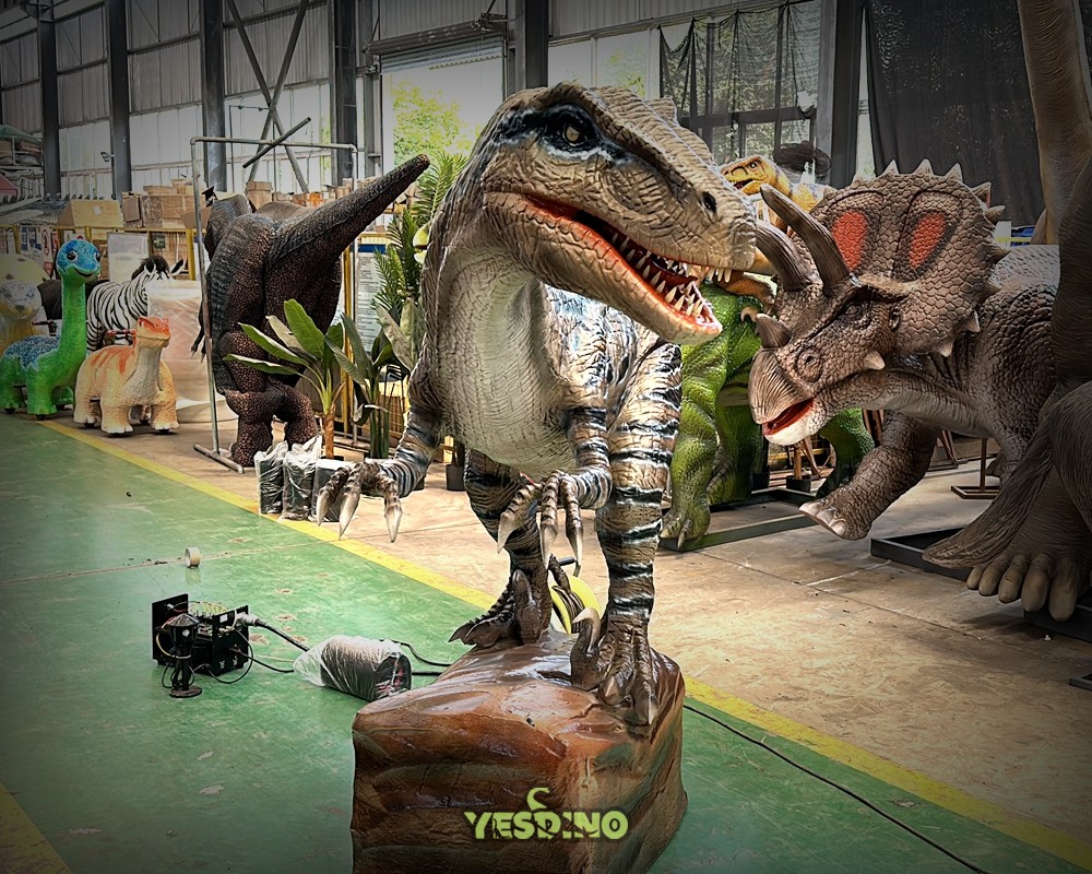 This Animatronic Raptor model is meticulously crafted to replicate the proportions of real fossils. It is a well-known star dinosaur, famous for its intelligence and agility. Raptors are featured in various dinosaur movies, making them recognizable to both adults and children. Whether in large dinosaur exhibitions or dinosaur-themed amusement parks, Raptor models are almost always present. This dinosaur model not only has clear skin textures and a realistic appearance but also, when powered on, can simulate various dinosaur movements and emit roaring sounds. It is one of our best-selling animatronic dinosaur products. |