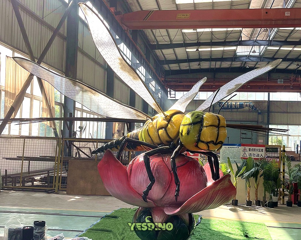 This large 3d dragonfly model is an electric display designed specifically for exhibitions and decorative settings. Its exquisite exterior design and meticulous detailing closely emulate the authentic appearance of a dragonfly. Internally, it features advanced electric motors and related transmission structures, replicating the graceful flight movements of a real dragonfly. Furthermore, the integration of unique lighting effects and sound adds vibrancy to the entire scene. |
