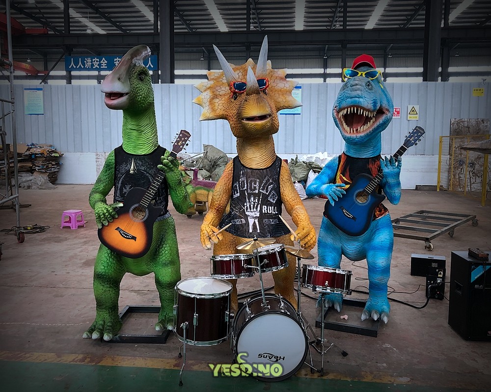 In the scenic area, the Dinosaur Band can offer visitors a unique tourism experience. While enjoying the dinosaur performances, tourists can also listen to dynamic music, enhancing the fun and interactivity of their visit. In parks and shopping malls, the Dinosaur Band's performances can also attract more people to stop and appreciate, creating a pleasant atmosphere. |