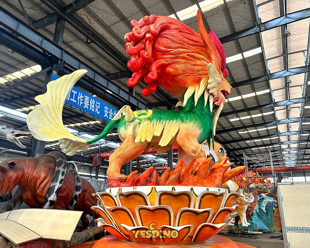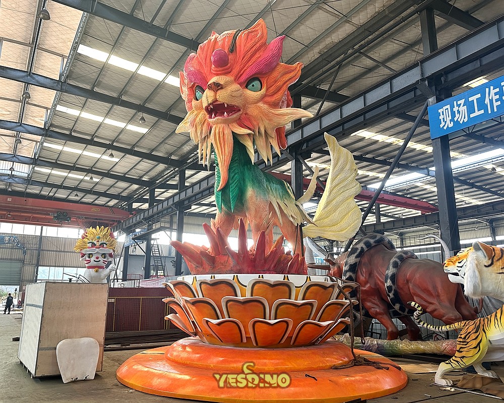 This Chinese Qilin Model is placed in the cultural square for use by customers. In addition to characters and animals from Chinese mythology, various floral models are used. It is displayed together with the colored lantern arrangements in the customer's venue, creating an atmosphere of festivity, peace, and liveliness brought by various auspicious mythical creatures in Chinese ancient culture. It is particularly suitable for scenic areas, cultural squares, commercial complexes, etc., with a strong Chinese cultural theme. It is most effective during traditional events such as the Spring Festival, Lantern Festival, Dragon Boat Festival, etc. If you are interested in various mythical creature models, please contact us for more detailed information. |