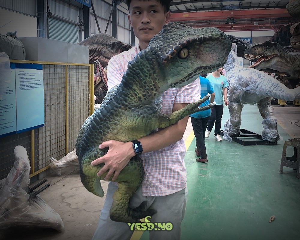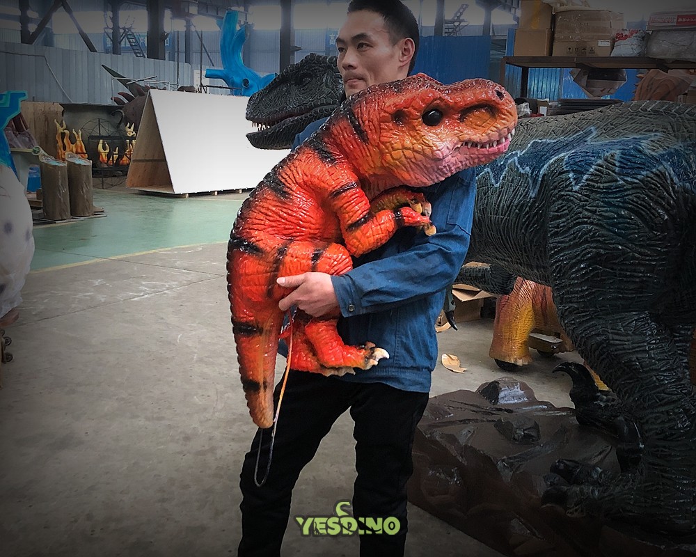 The performer can operate on the back of the dinosaur with their hands to make it blink, open its mouth, shake its head and other actions, and it will emit a roar when its mouth is open. |