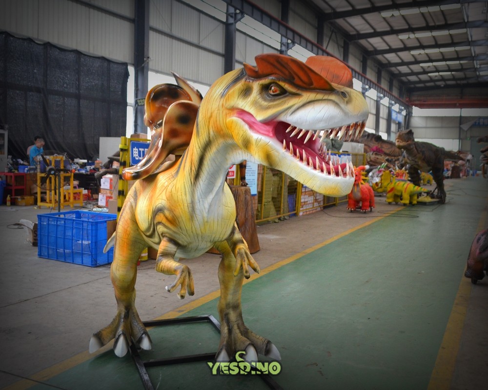 The fiberglass Dilophosaurus sculpture boasts the advantages of being weather-resistant, durable, and suitable for long-term outdoor placement in parks, amusement parks, squares, scenic areas, and other outdoor locations. It is lightweight, easy to transport, and offers an affordable option, making it a practical choice for various outdoor settings. |